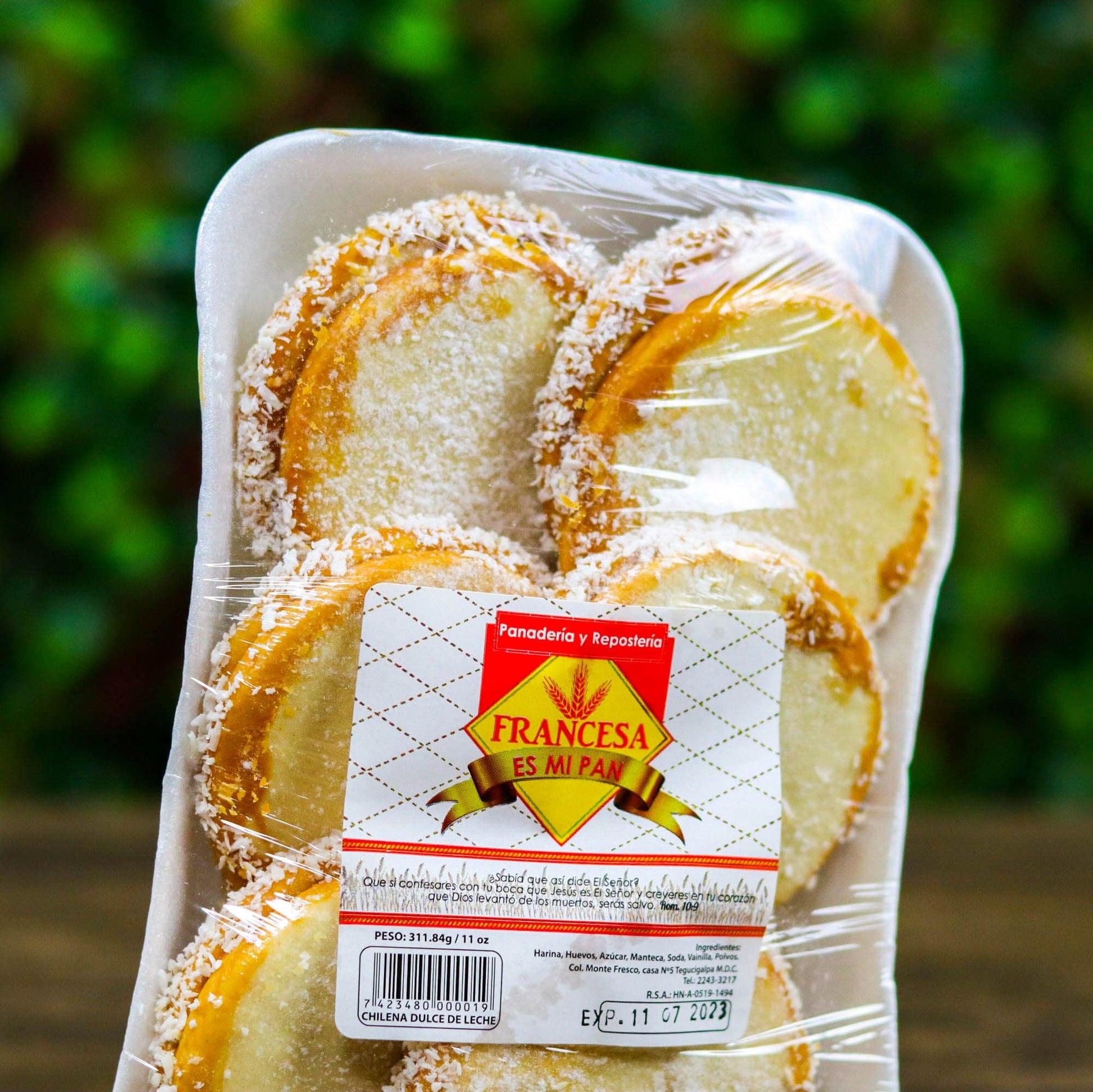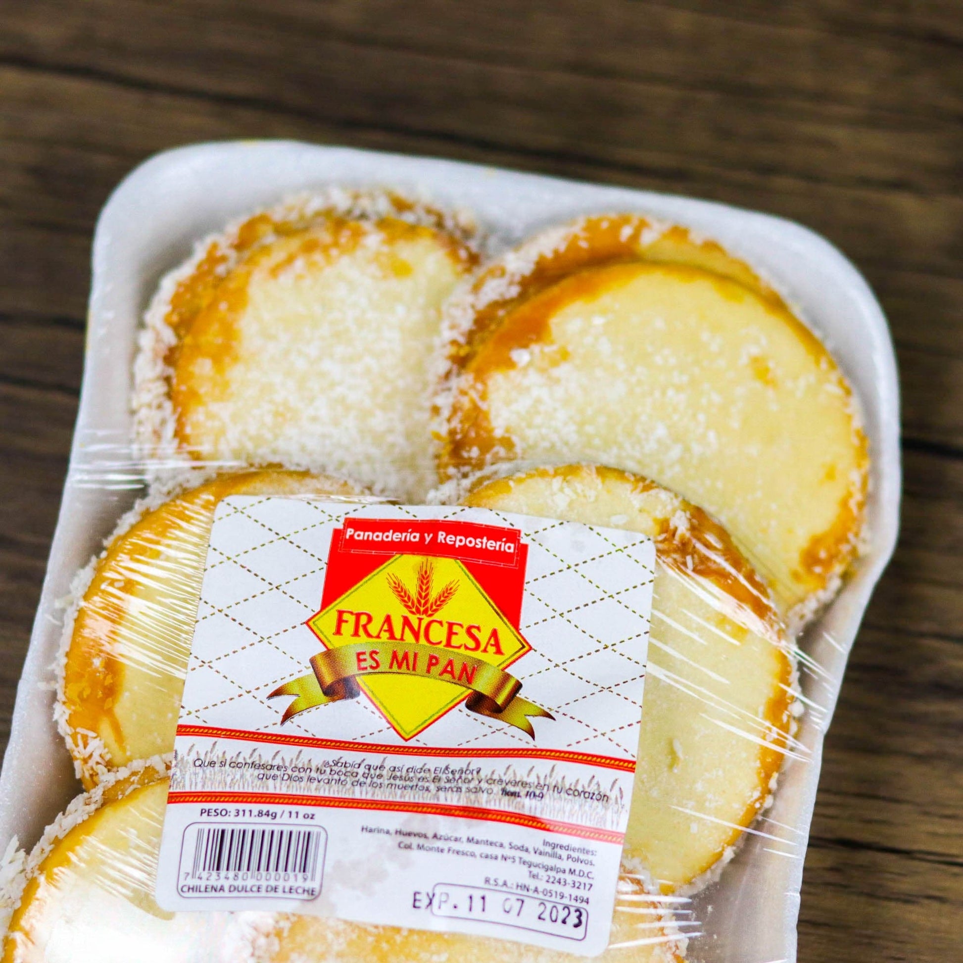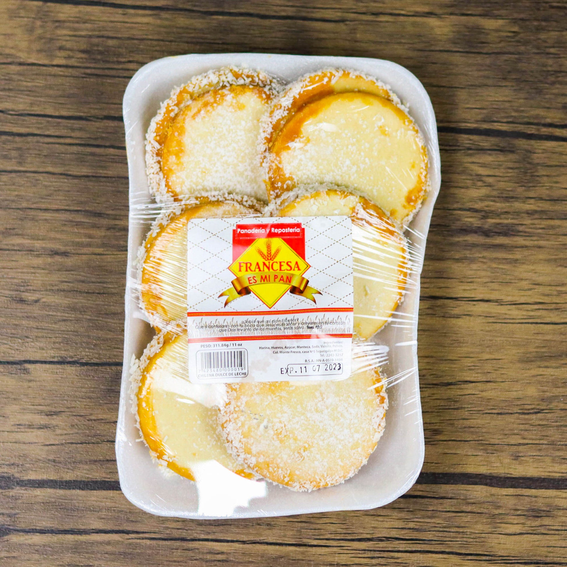 Deliciosa chilena espolvoreada y rellena de dulce de leche. Elaborada con ingredientes 100% hondureños. Comprala ahora y disfrutala en tu hogar en Estados Unidos o Canada.