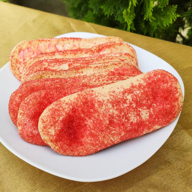 Galletas con forma de lenguas, espolvoreadas tipo polvoron. El paquete incluye 10 galletas.