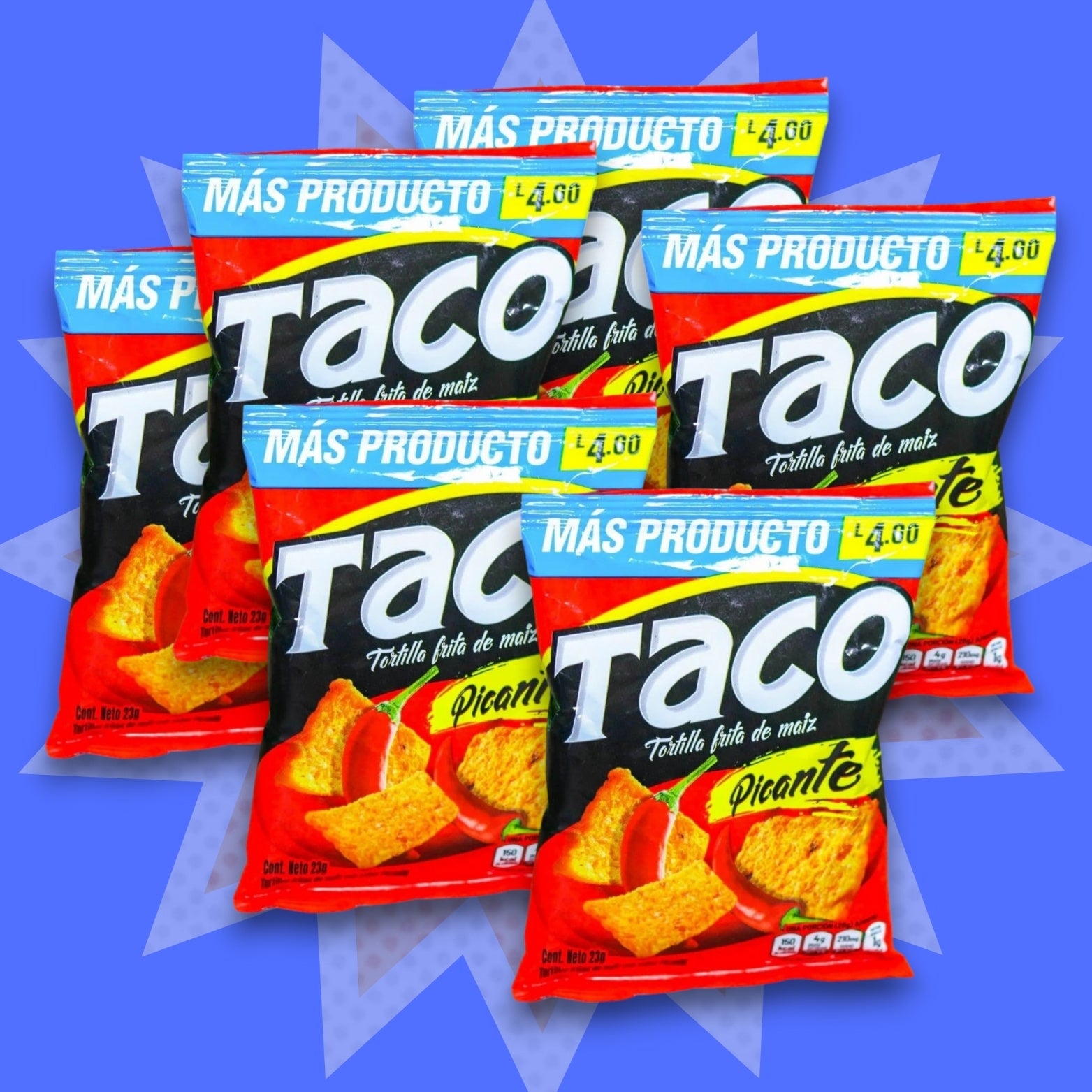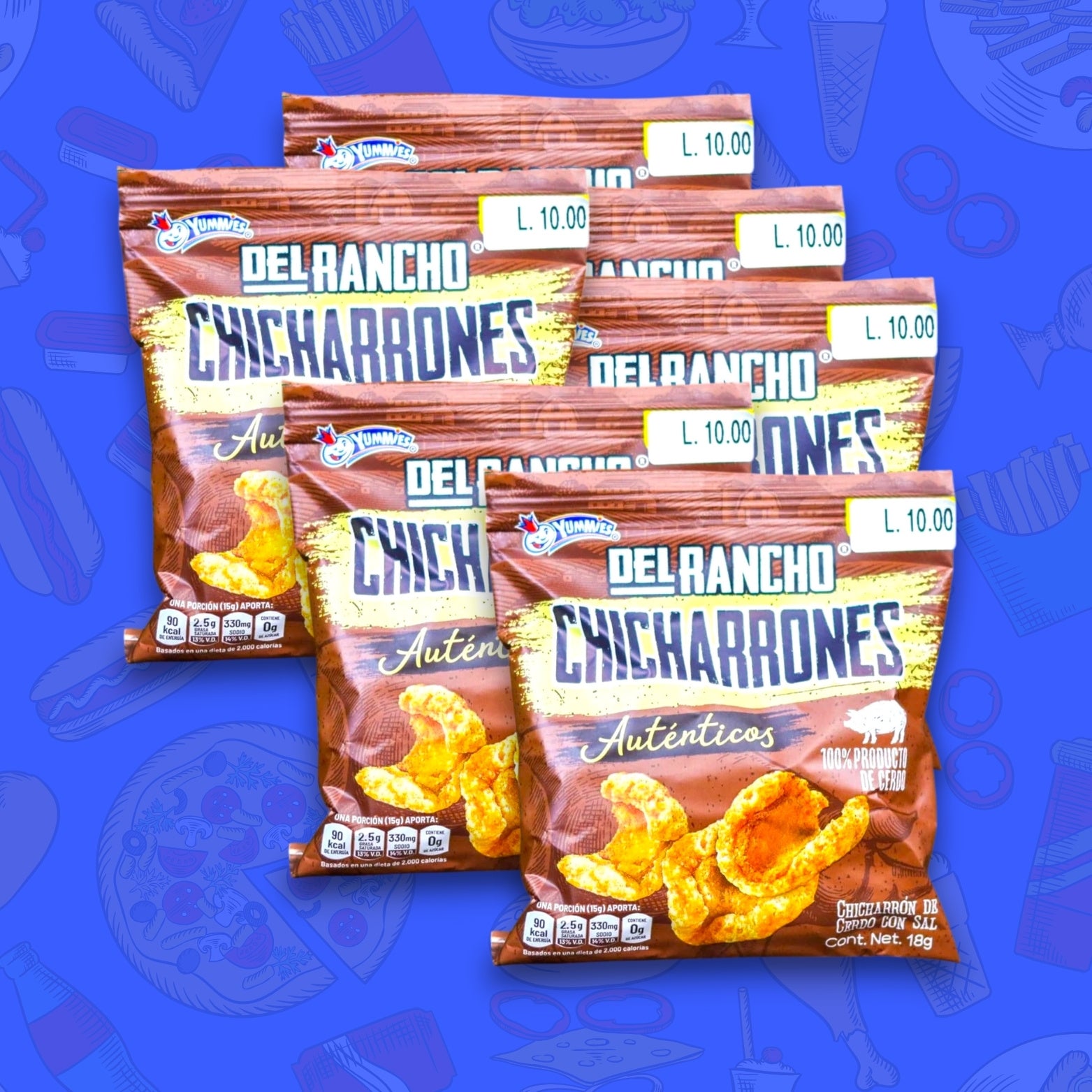 Son 108 unidades, 18 sabores distintos, todos importados directamente desde Honduras, para que cada mordida te lleve a la pulpería, a la feria y a esas meriendas después de clases que nunca se olvidan.